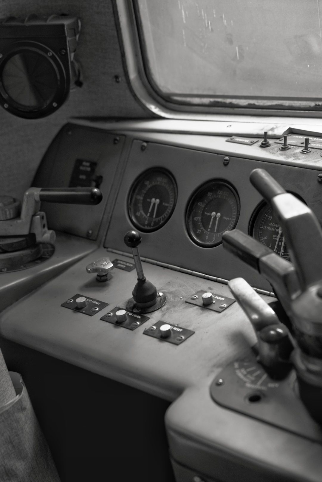 A driver leaning out of the cab.
